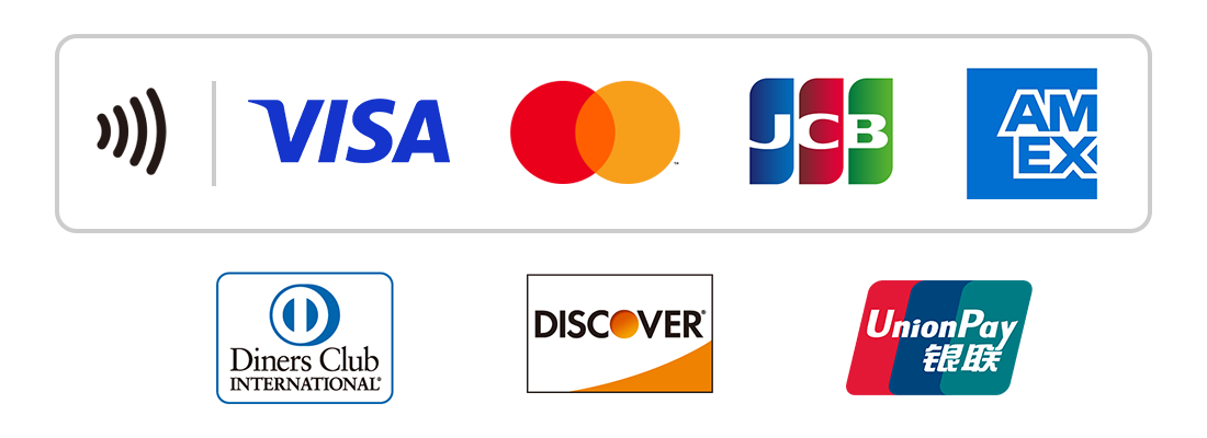 クレジットカード五大ブランドはもちろん、中国で利用されているUnionPay(銀聯)にも対応しています